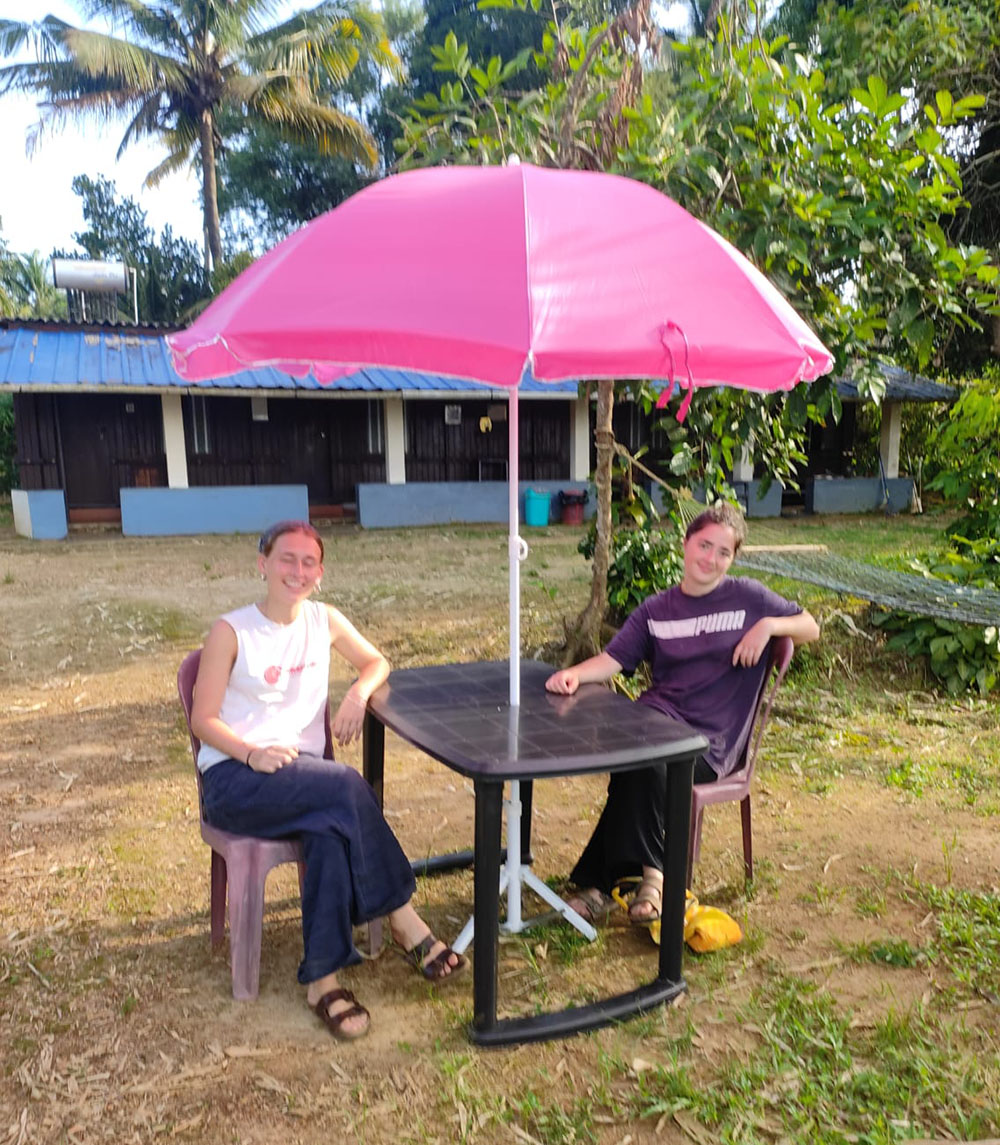 Our guest accommodation is in a separate cottage of 4 basic, mosquito free air conditioned rooms 30 metres from the house where we live. The location is private with no visible or audible neighbouring houses, but with the scenic view of the paddy fields that are seen in the photo at the top. In short, our guests can enjoy their privacy and freedom in the guest cottage. All rooms have attached bathrooms with western toilets and a shower with hot and cold water. Each room has its own entrance with veranda equipped with deckchairs, teapoy and table fans. There is also an electric kettle, tea bags, coffee powder, a mini refrigerator and a hair-drier in all rooms. In front of the rooms, there is a natural garden with hammocks and swings. And we have 24 hours uninterrupted Wifi all over the property.
